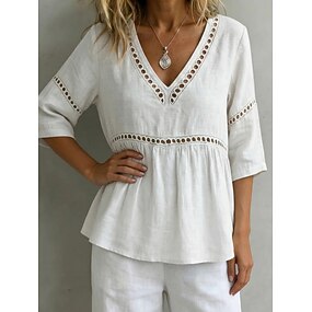 Damen Bluse Einfarbig Täglich Stilvoll Basic Halbarm V Ausschnitt Normale Oberteile Täglich Blau Weiß Gelb Rosa Königsblau Sommer Frühling