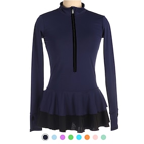Eiskunstlauf Top Mädchen Eislaufen Kleid Outfits Schwarz Weiß Rosa Daumenloch Spandex Hohe Elastizität Training Übung Eiskunstlaufkleidung Klassisch Langarm Eislaufen Eiskundstlauf