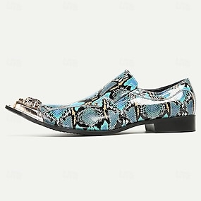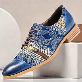Oxford-Schuhe aus hochwertigem Rindsleder mit Schlangenmuster für Herren – blaue Freizeitschuhe für formelle Anlässe und Partys