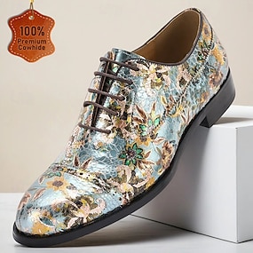 Oxford-Schuhe für Herren aus Jacquardgewebe mit Blumenmuster im Retro-Stil und Lederakzenten – für legere und formelle Anlässe