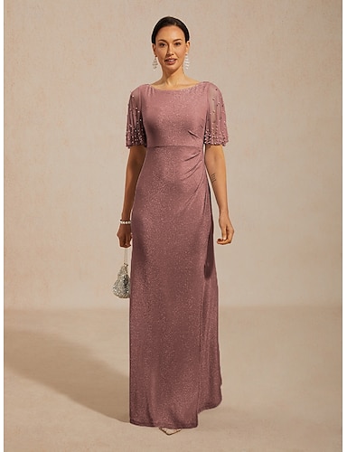 Damen Maxikleid A Linie Kleid Kleider mit Empire-Taille Elegant Flattrige Ärmel Hochzeitsgast Cocktailparty Perlenbesetzt Strass Steine Verschönert Normale Passform Einfarbig Kurzarm