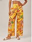 Urlaubsgelbe, gerade geschnittene Satinhose mit Paisley-Blumenmuster