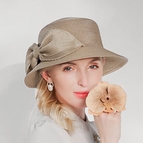 Hüte Faser Fedora-Hut Strohhut Sonnenhut Hochzeit Teegesellschaft Elegant Hochzeit Mit Schleife Kopfschmuck Kopfbedeckung