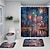 4-teiliges Duschvorhangset inklusive WC-Sitz und Badematte – weihnachtliche Badezimmerdekoration für den Innenbereich, Feuerwerksmotiv mit Hügellandschaft, wasserdichtes Polyestermaterial,