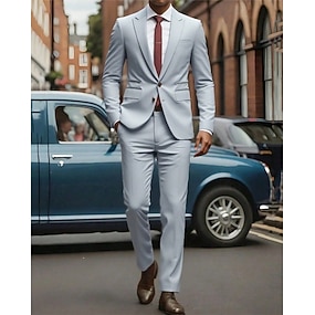 Herren Blazer Set Geschäft Cocktailparty Hochzeitsfeier 2 Stück Mode Lässig Frühling Herbst Polyester Einfach Tasche Knöpfe Bequem Einreihig Blazer Silber