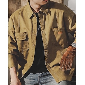 Herren Hemdjacke Überhemden übergangsjacke Täglich Leicht Tasche Sommer Frühling Einfach Klassisch Revers Aprikose Schwarz Marineblau Blau Dunkelgrün Jacken