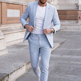 Herren Anzüge Seersucker-Anzüge Strandhochzeit Lässig Himmelblau Salbei Frühling, Herbst, Winter, Sommer Anzug Gekerbtes Revers Mode Leicht Einfarbig Standard Passform 2-teilig Einreihige