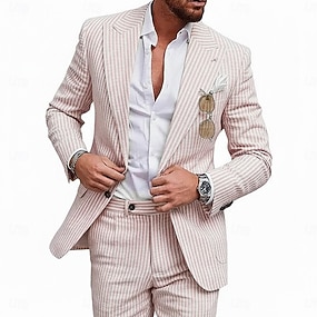 Herren Leinenanzüge Strandhochzeit Strand Champagner Rosa Frühling, Herbst, Winter, Sommer Anzug Einfarbig Figurbetonter Schnitt 2-teilig