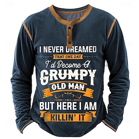 Herren Grafik Buchstabe Alter Mann Henley Hemd Langarm 3D-Druck Mode Täglich Lässig Lässig Ferien Ausgehen Frühling & Herbst Schwarz Marineblau Braun Armeegrün Henley Henley T-Shirt