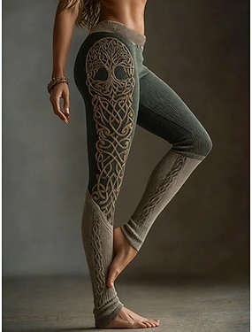 Damen Chinos Leggings Gemütliche Leggings Urlaub Vintage Ethno-Stil Volle Länge Hohe Taille Blumen Grafik Drucken Thermowarm Bequem Dehnbar Formell Urlaub Straße Grün Herbst Winter Schmale Passform