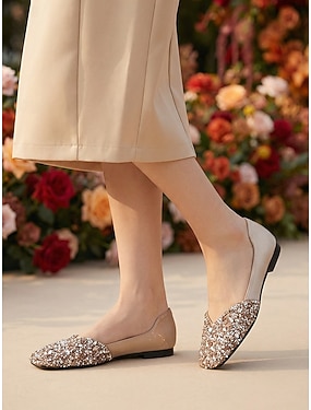Champagnerfarbene Strass-Ballerinas für Damen, elegante Zehentrenner zum Hineinschlüpfen, perfekt für die Mutter der Braut, Gartenhochzeit &formelle Veranstaltungen