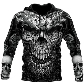 Herren Schädel Grafikdrucke Kapuzensweatshirt Kapuzenshirts Pullover Streetwear Designer Basic Lässig Langarm Mit Kapuze Täglich Sport Schwarz Druck Frühling & Herbst Designer S M L XL XXL 3XL