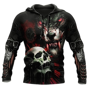 Herren Schädel Grafikdrucke Kapuzensweatshirt Kapuzenshirts Pullover Streetwear Basic Lässig Langarm Mit Kapuze Täglich Sport Schwarz Druck Frühling & Herbst Designer S M L XL XXL 3XL
