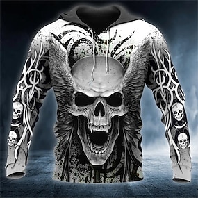 Herren Schädel Grafikdrucke Kapuzensweatshirt Kapuzenshirts Pullover Streetwear Designer Lässig Langarm Mit Kapuze Sport & Outdoor Täglich Sport Ferien Schwarz Reißverschluss Druck Frühling & Herbst