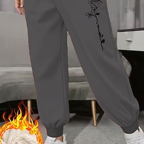 Damen Baumwoll-Leinen Hosen Baggy Hosen Leinenähnlich Fashion Streetwear Voll Länge Hohe Taille Blumen Grafik Druck Thermisch Warm Atmungsaktiv Weich Mikro-elastisch Outdoor Täglich Pink Herbst Winter