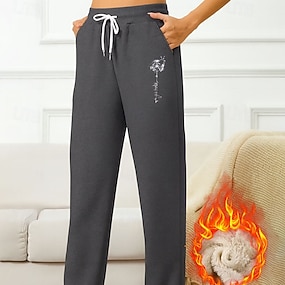 Damen Jogginghose Urlaub Vintage Ethno-Stil Volle Länge Hohe Taille Schmetterling Kordelzug Tasche Fleece Thermowarm Winddicht Bequem Dehnbar Urlaub Formell Straße Dunkelgrau Schwarz Winter Normale