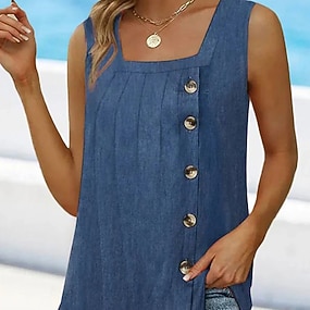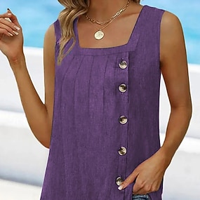 Damen Spaghettiträger Top Basic Knöpfe Druck Ärmellos Regelmäßige Tops V-Ausschnitt Freizeit Blau Lila Orange Grün