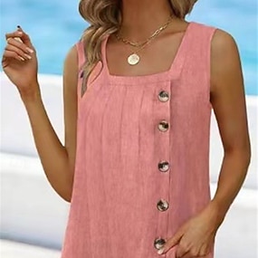 Damen Trägertop Ausgeh Tops Basic Gestreift mit Knöpfen Druck Ärmellos Reguläre Tops V-Ausschnitt Lässig Rosa Blau Lila Khaki