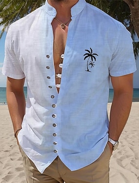 Herren Palme Tropische Pflanzen Sommer Hawaiihemd Alohahemd Bedruckte Hemden Kurze Ärmel Hemd Stehkragen Hawaiianisch Resort Urlaub Ferien Alltagskleidung Rosa Blau Himmelblau S M L