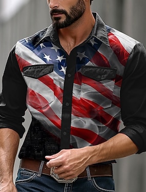 Herren Amerikanische US-Flagge 250. Jahrestag des Unabhängigkeitstages der USA am 4. Juli Freizeithemd Westernhemd Knopfhemd Langarm Western Lässig Lässig Sport Frühling Herbst Umlegekragen Knopf