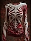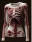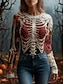 Halloween Damen T-Shirt Skelett Schädel Grafik Skelett Vintage Mode Stylisch Lange Ärmel Rundhalsausschnitt Reguläre Oberteile Alltag Wochenende Print Schwarz Wein Dunkelgrau Sommer Frühling Herbst
