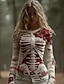 Halloween Damen Blutfleck Print Midi Kleid A-Linie Kleid Kleid Fit And Flare Kleid Party Casual Täglich Feiertag Regulär Passform Grafik Abstrakt Kurzarm V-Ausschnitt Tiefgrün Weiß Weinrot Herbst