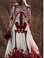 Halloween Damen Maxikleid Faltenkleid Boho Date Ausgehen Normale Passform Schädel Langarm V Ausschnitt Rote Herbst