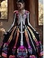 Halloween Damen Maxikleid A Linie Kleid Urlaub Lässig Boho Strand Normale Passform Blumen Grafik Langarm V Ausschnitt Schwarz Dunkelrot Wein Rote Frühling Herbst