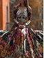 Halloween Damen Maxikleid A Linie Kleid Urlaub Lässig Boho Strand Normale Passform Grafik Schädel Bulle Langarm V Ausschnitt Schwarz Wein Dunkelgrau Frühling Herbst