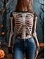 Halloween Damen T-Shirt Totenköpfe Grafik Skelett Vintage Stilvoll Lässig Kurzarm Rundhals Regular Tops Daily Ausgehen Wochenende Druck Rosa Blau Lila Grün Sommer