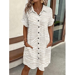 Damen Minikleid Hemdblusenkleid Freizeitkleid Druckkleid Mode Modern Täglich Strand Wochenende Normale Passform Gestreift Kurzarm Hemdkragen Weiß Sommer Frühling Herbst