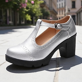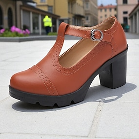 Elegante Vintage-Pumps mit T-Riemchen und dickem Absatz für Damen – braune Brogue-Pumps aus Leder für Oktoberfest, Retro und Abendgarderobe