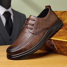 Dunkelbraune Herren-Businessschuhe, eleganter Schnürstil, hochwertiges Kunstleder, perfekt für Büro und professionelle Anlässe.