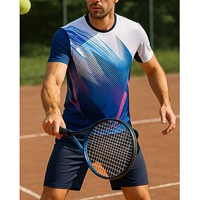 Herren Grafik Geometrisch Sport-Set Hemden & Shorts Tennis-Set 2 Kurze Ärmel Schweißableitend Feuchtigkeitsableitend Atmungsaktiv Tennis Golfspiel Pickleball Blau Grün Tennisbekleidung