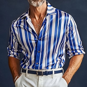 Herren Hemd Satinhemd Gestreiftes Hemd Freizeithemd Knopfhemd Vertikale Streifen Hochzeit Urlaub Blau Langarm Kragen Frühling & Herbst Bekleidung