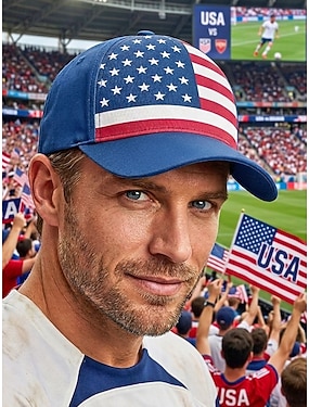 Baseballkappe für Herren aus Polyester in den Farben der amerikanischen Flagge, verstellbare Passform, ideal für Fußballfans, Spieltage, Fußballveranstaltungen, Freizeit-Sportbekleidung und den Alltag im Freien.