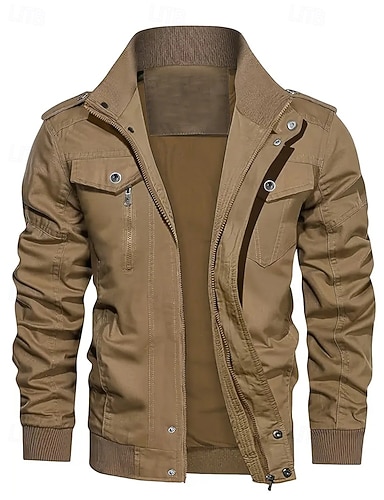 Herren Bomberjacke College Jacke Taktische Jacke Casual tragbar Multi Pocket Frühling Herbst Winter Militär Militär Stil Ständer Standard Baumwolle Regular Fit Schwarz Armeegrün Khaki Jacken