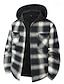 Herren Wintermantel Hemdjacke Fleecejacke Freizeitjacke Lässig Täglich Thermowarm Tasche Button-Down Herbst Winter Karomuster Streetwear Täglich Mit Kapuze Regulär Rote Himmelblau Dunkelgrün Orange