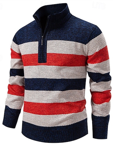 Herren Pullover Pullover mit Viertelreißverschluss Strickpullover Gerippt Stricken Normale Oberteile Gestrickt Gestreift Halber Reißverschluss Mode Lässig Urlaub Alltagskleidung Bekleidung Herbst