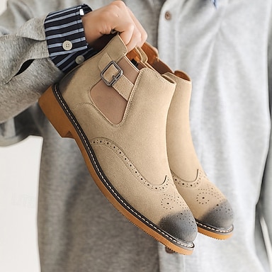 Beige Stiefeletten aus Kunstleder für Herren – stylisches Schnallendesign mit Brogue-Details, ideal für elegante Freizeitkleidung, Büro und Alltagsausflüge