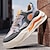 Graue und orangefarbene Herren-Sneaker zum Hineinschlüpfen – leichte und bequeme Freizeitschuhe, modische Low-Top-Schuhe für Alltag, Reisen, Wochenend-Outfits, Streetwear und lässigen Freizeit-Look.