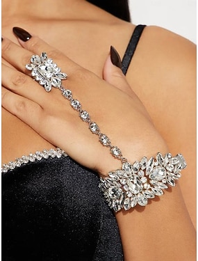 Damen-Handkettenarmband aus silbernem Strass mit Statement-Ring, glamouröser Schmuck für Partys und besondere Anlässe