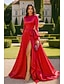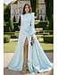 A-Linie Bodenlang Abendkleid Festliche Kleidung Elegant Hoher Schlitz seidig Langarm Rundhalsausschnitt Hochzeit Formell Satin mit Schleife(n) Gerafft Schlitz