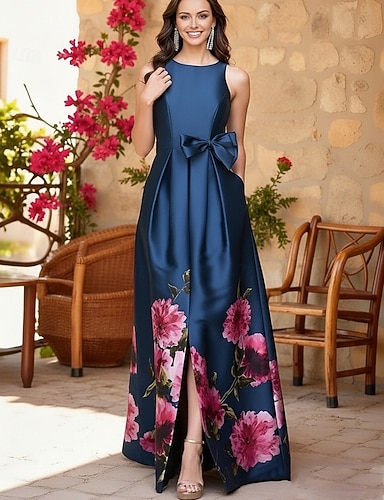 A-Linie Tee-Länge Cocktailkleid Kleid für Hochzeitsgäste Derby-Kleid Brautmutterkleid Ärmellos Rundausschnitt Elegant Hochzeitsgast Kentucky Derby Satin mit Druck