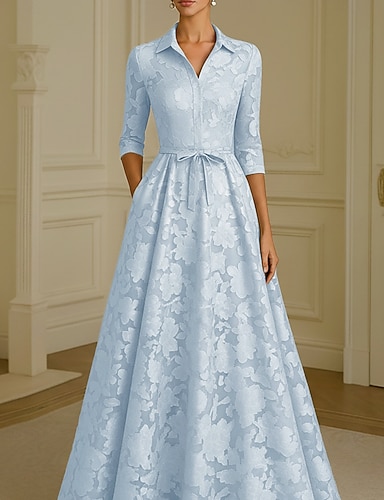 A-Linie Bodenlang Kleid für Hochzeitsgäste Abendkleid Brautmutterkleid Dreiviertelarm V Ausschnitt Elegant Vintage Formell Jacquard mit Blumenmuster Schleife(n) Farbblock