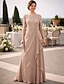 A-Linie Bodenlang Kleid für Hochzeitsgäste Abendkleid Brautmutterkleid Langarm Juwelenhals Elegant Hochzeitsgast Formeller Abend Chiffon Spitze Paillettenbesetzt mit Geteilter Vorderteil Raffung