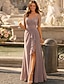 A-Linie Schlauchkleid Bodenlang Perlenbestickt Kleid für Hochzeitsgäste Abendkleid Brautmutterkleid Ärmellos Ein-Schulter Elegant Vintage luxuriös Formell Satin mit Schleife(n) Applikationen