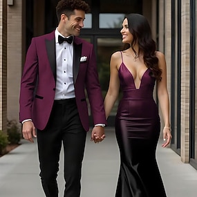 Herren Smokings Partyanzüge Abschlussball Hochzeit Burgunderrot Frühling, Herbst, Winter, Sommer Anzug Steigendes Revers Luxus Formell Einfarbig Standard Passform 3-teilig Einreiher - 1 Knopf