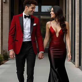 Herren Smokings Anzüge Abschlussball Hochzeit Rote Marineblau Anzug Schalkragen Geschäftlich Formell Einfarbig Standard Passform 3-teilig Einreiher - 1 Knopf