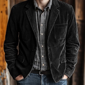 Herren Smokings Cordanzug Geschäft Party Schwarz Burgunderrot Herbst Winter Anzug Gekerbtes Revers Party Lässig Gestreift Figurbetonter Schnitt 3-teilig Einreiher - 3 Knöpfe